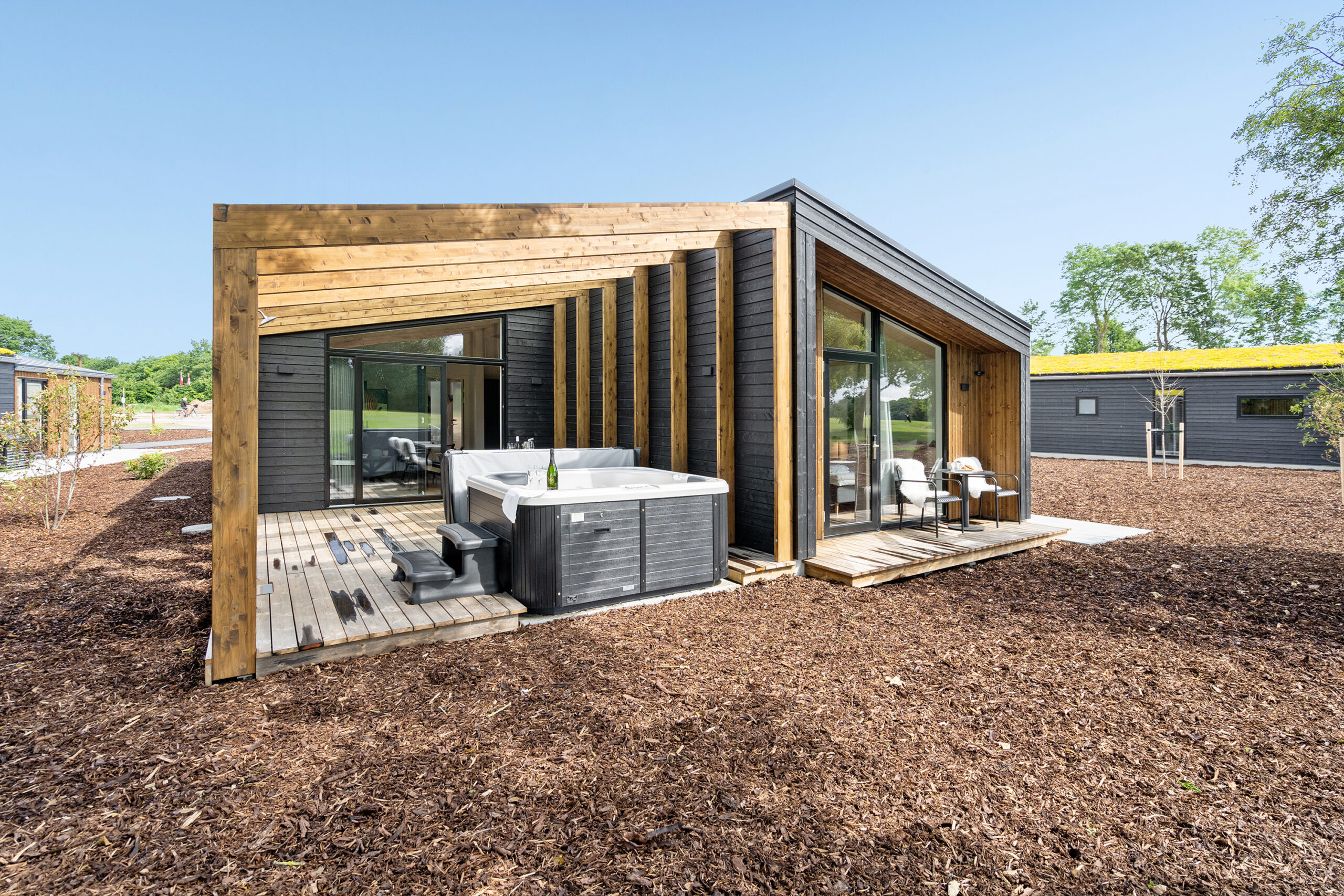 To dobbeltværelser, opholdsrum/køkken opvarmet spa på terrassen..